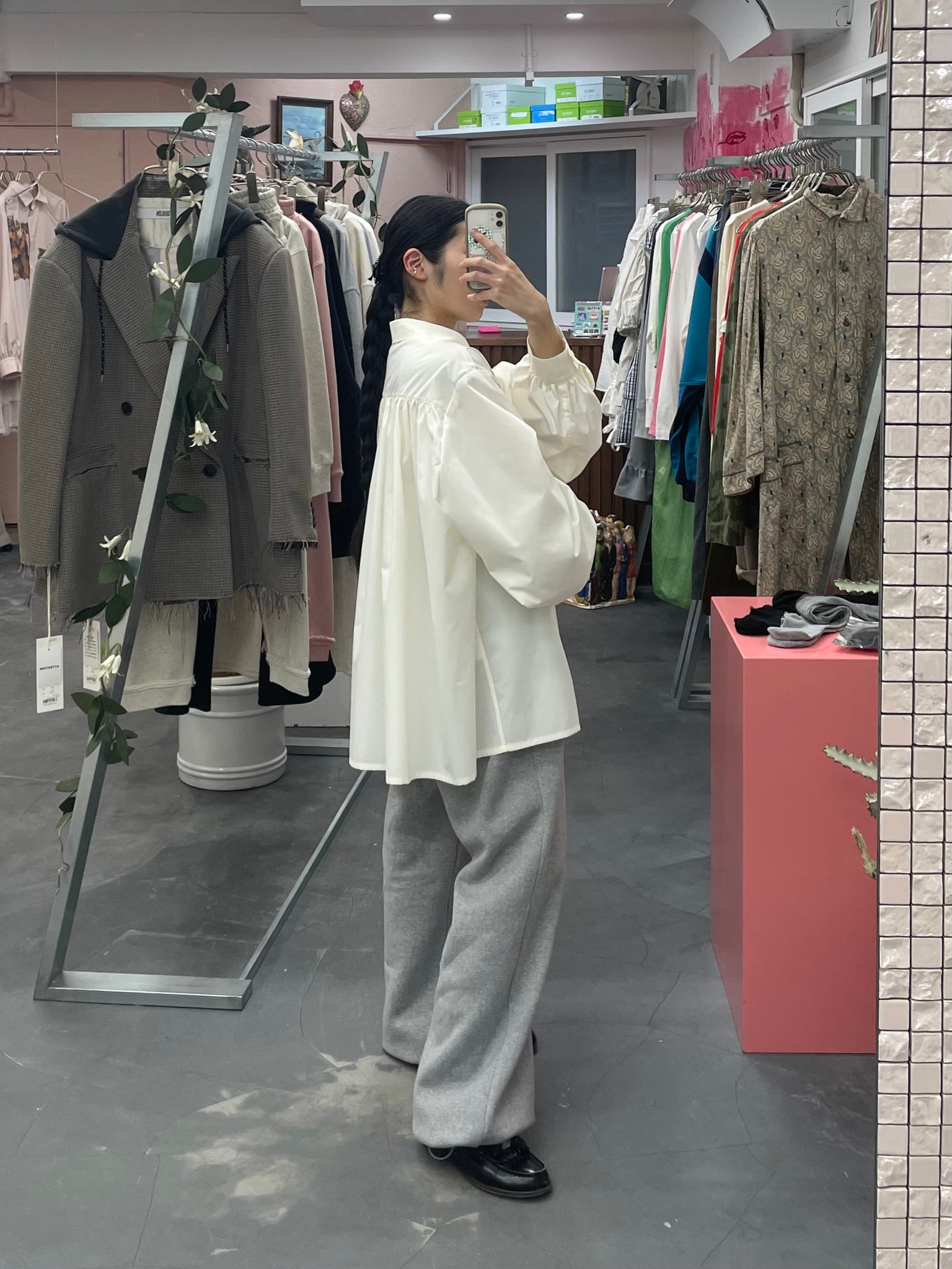 背中のギャザーや袖の溜まりなど、シルエットに拘って作られた一点。