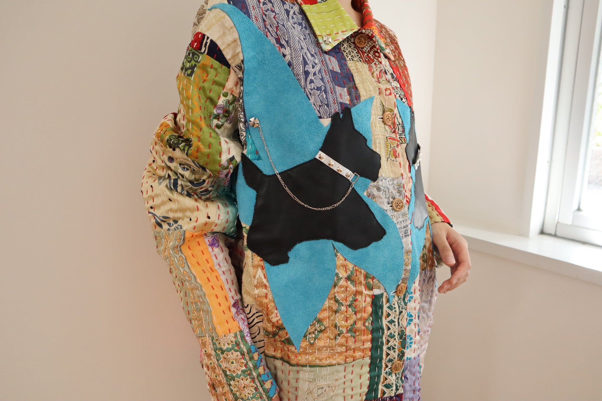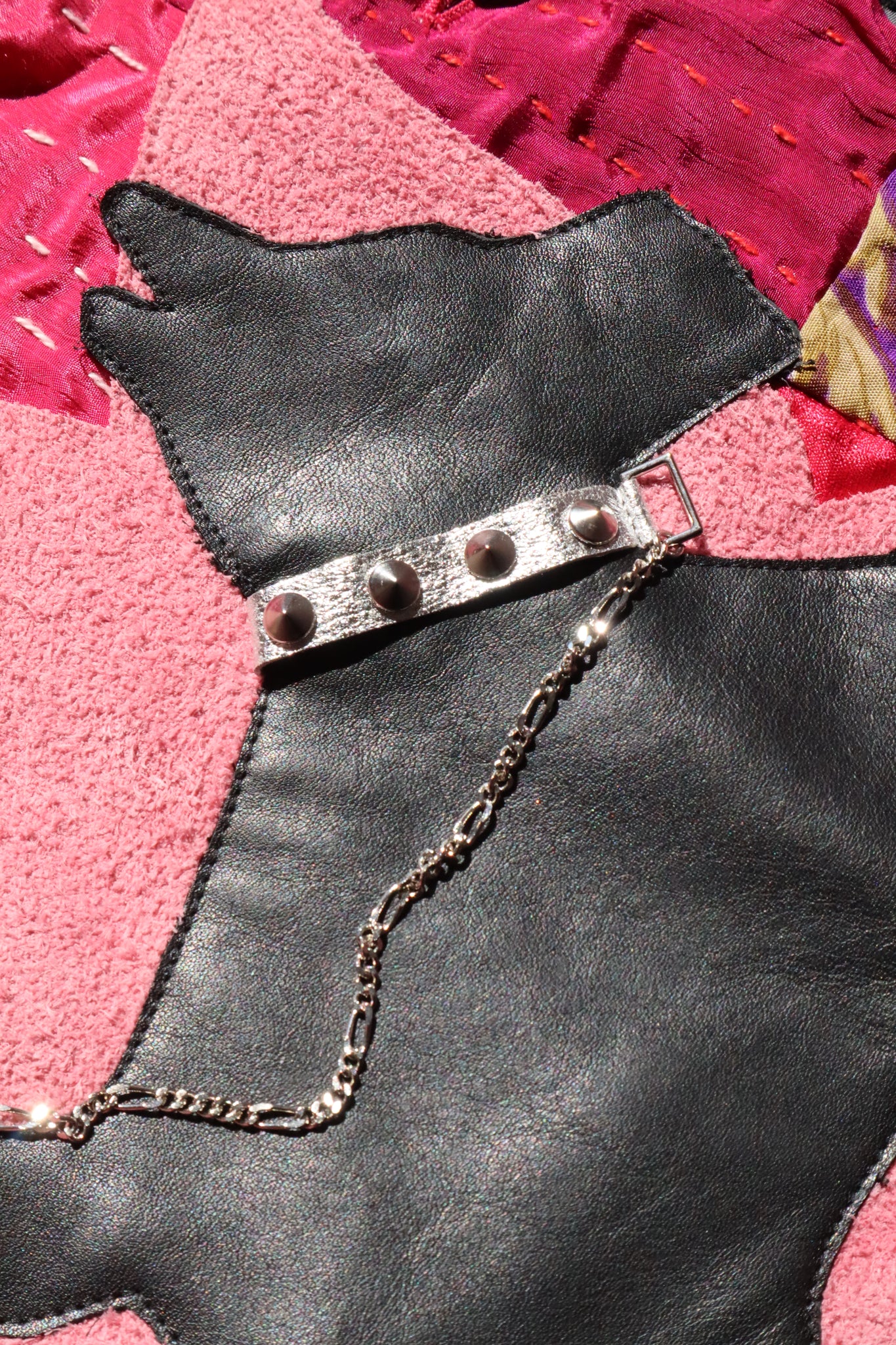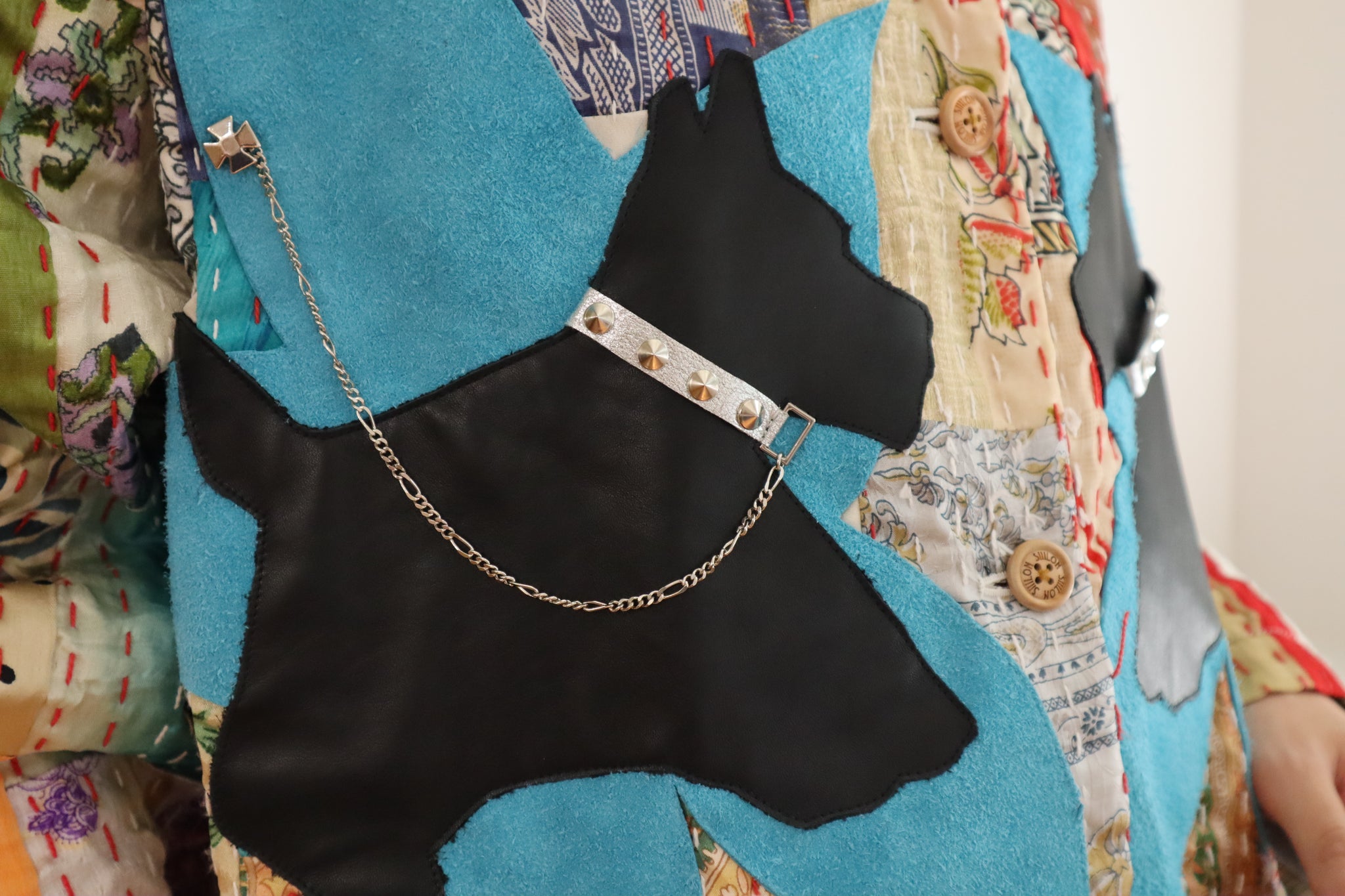 胸元には犬のレザーモチーフ付き。