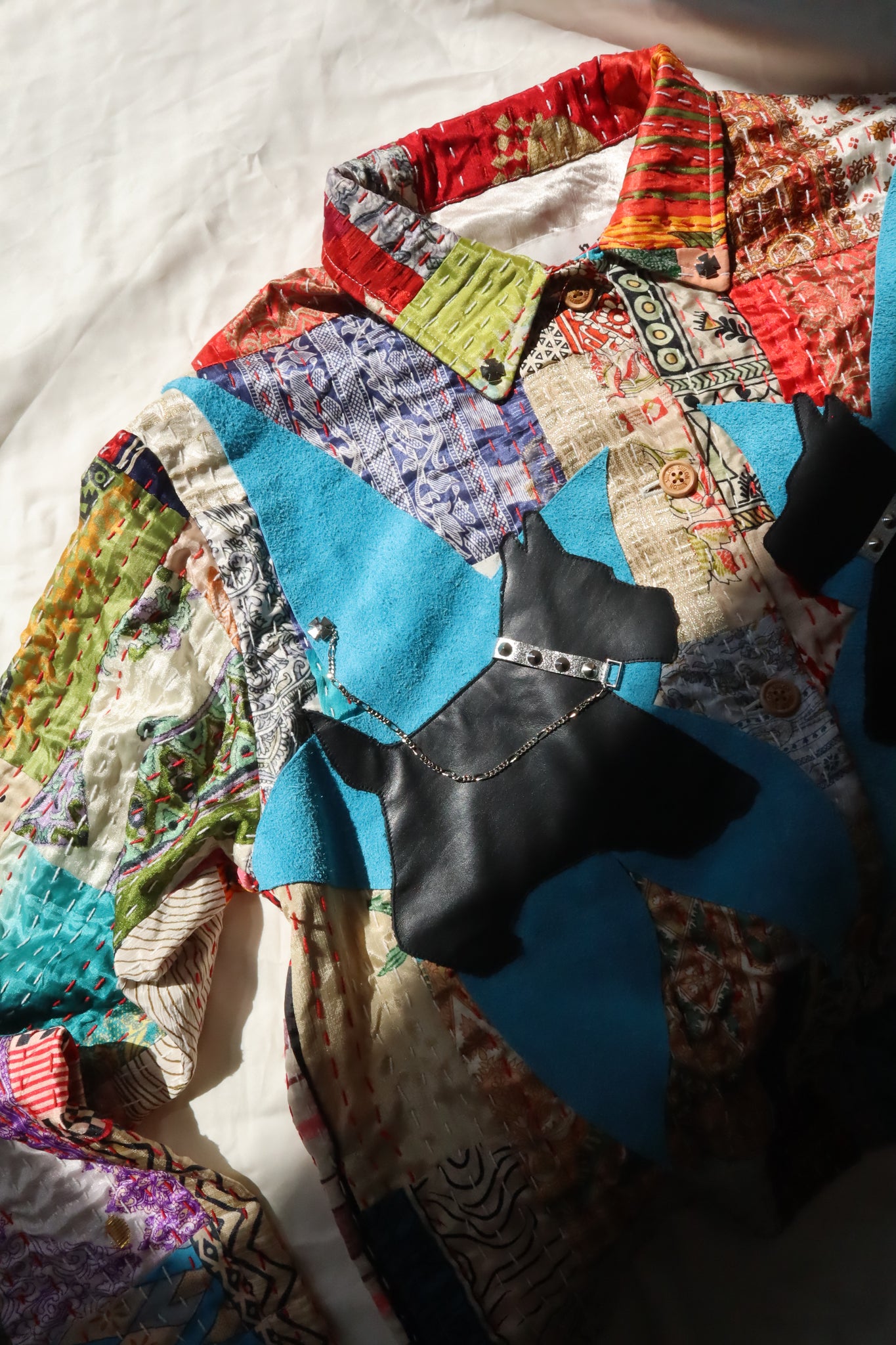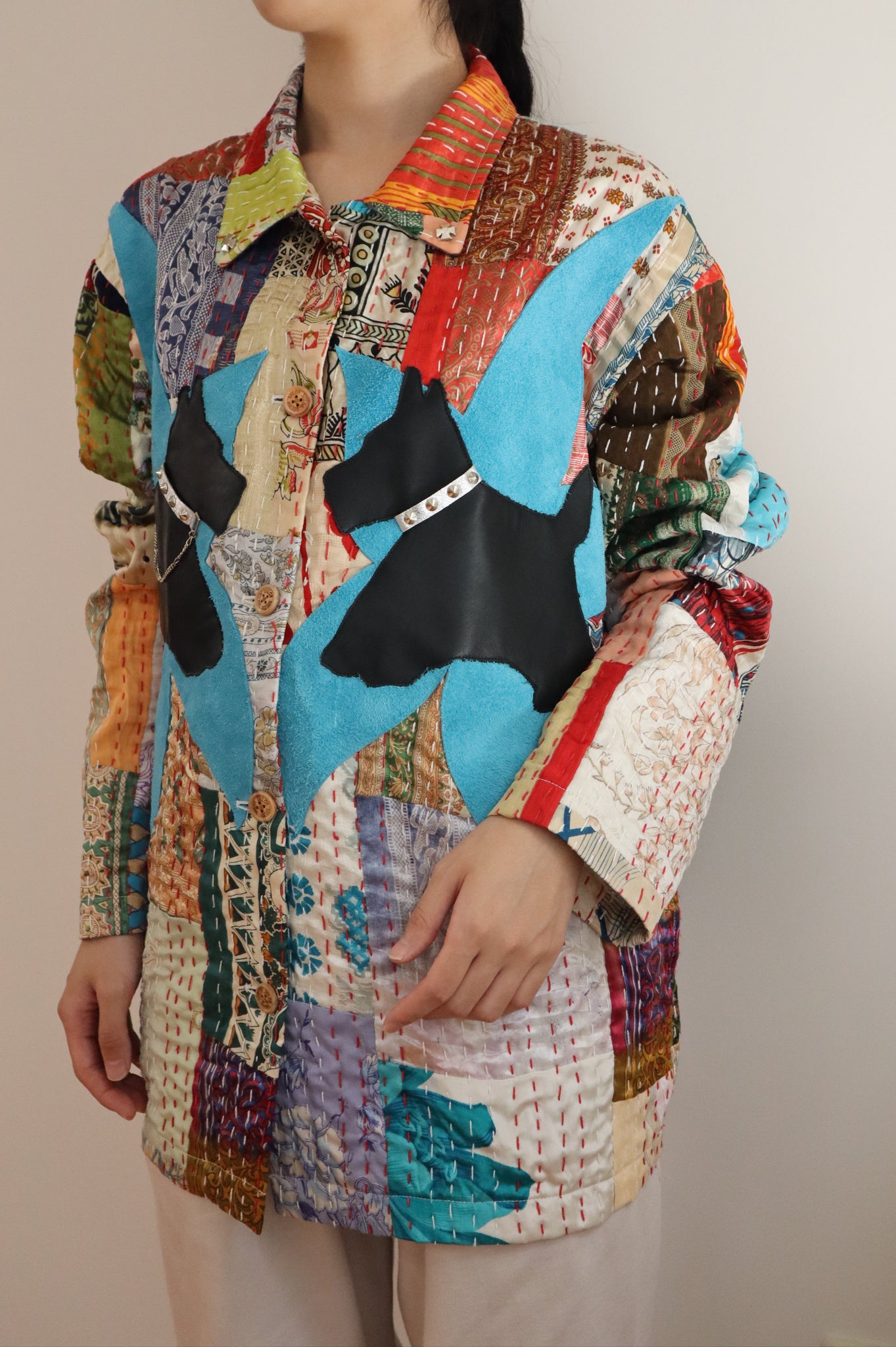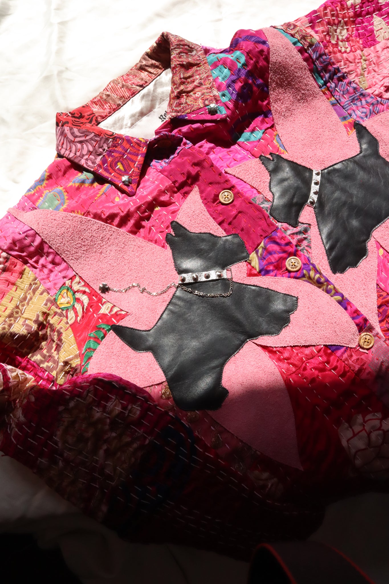 胸元には犬のレザーモチーフ付き。