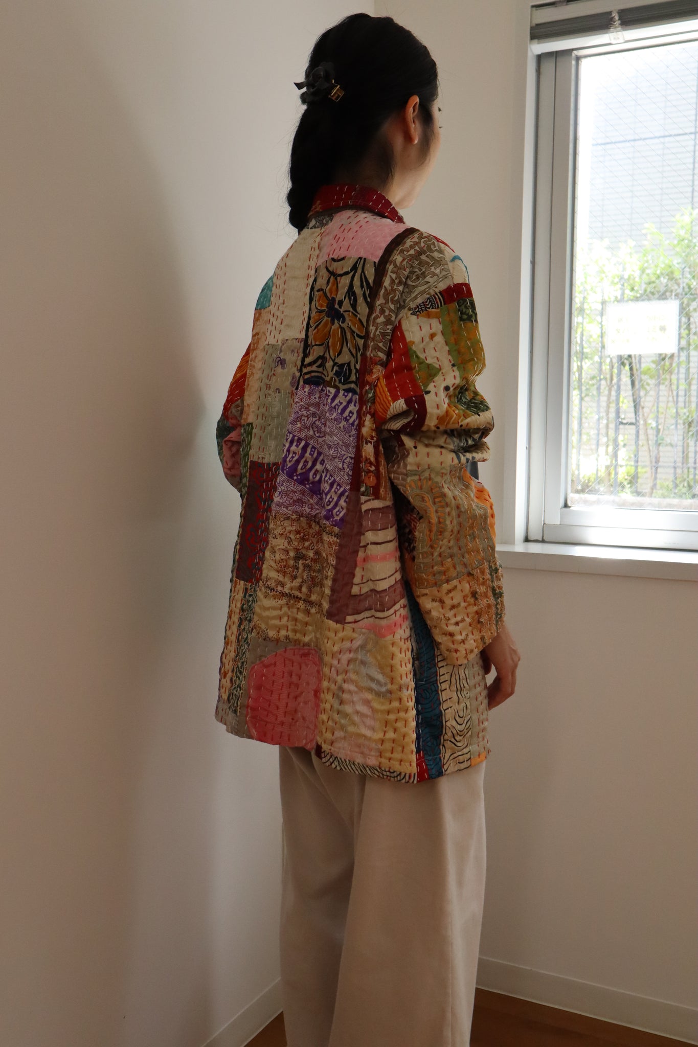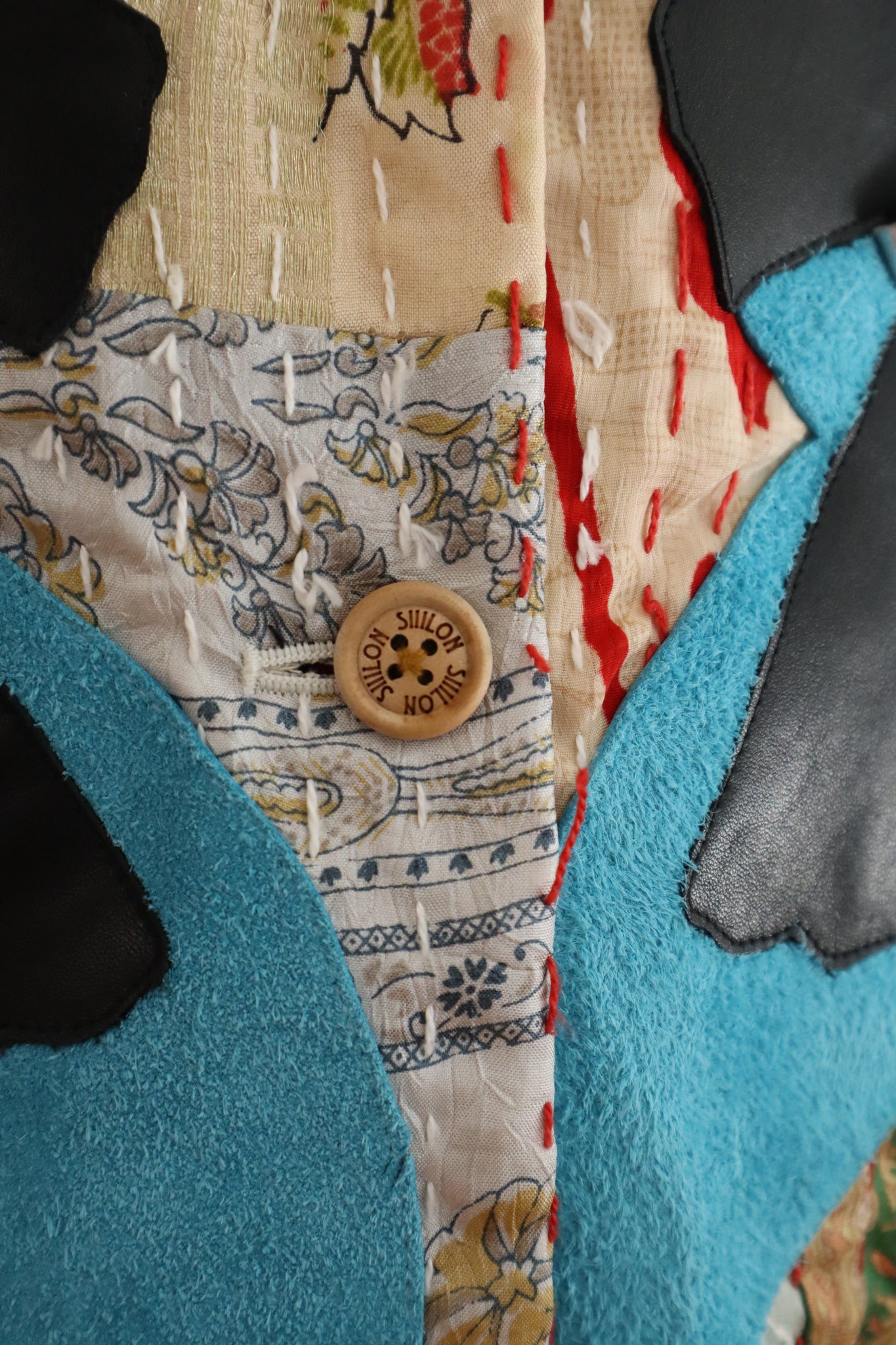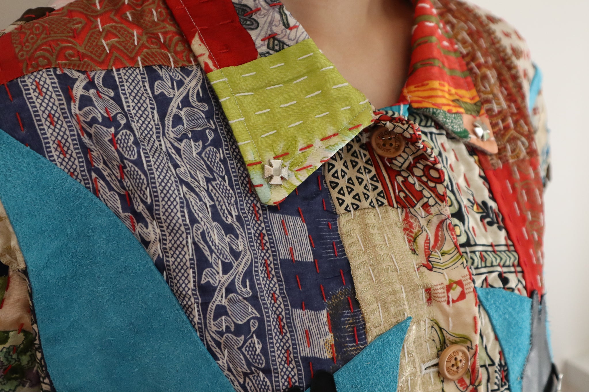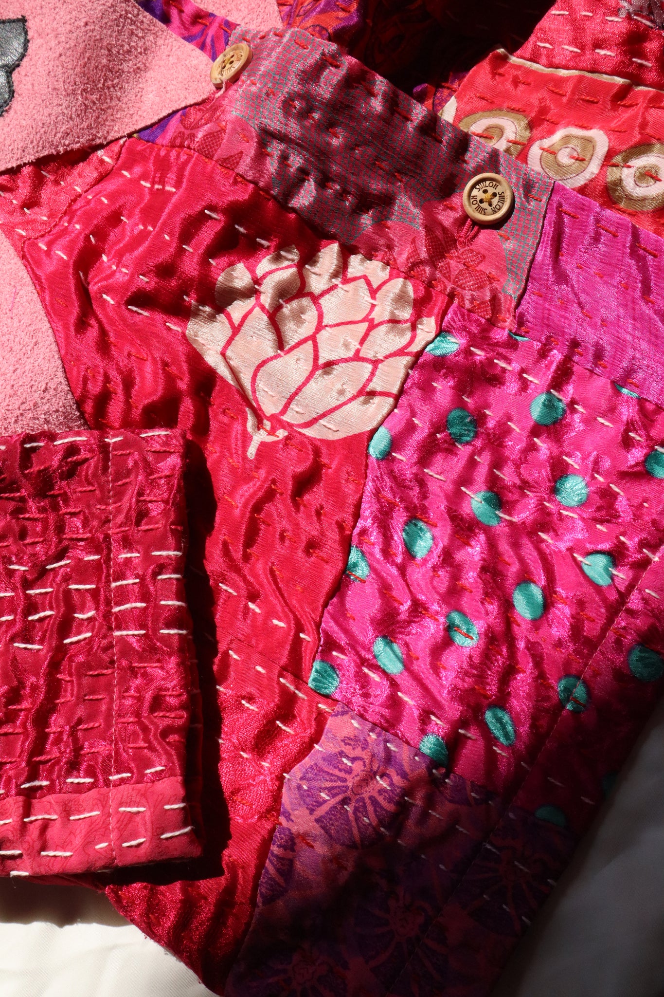 貴重なハンドステッチによる不揃いな針目が、手仕事ならではの美しいリズムを刻み、新たなSIIILONの洋服として生まれ変わりました。
