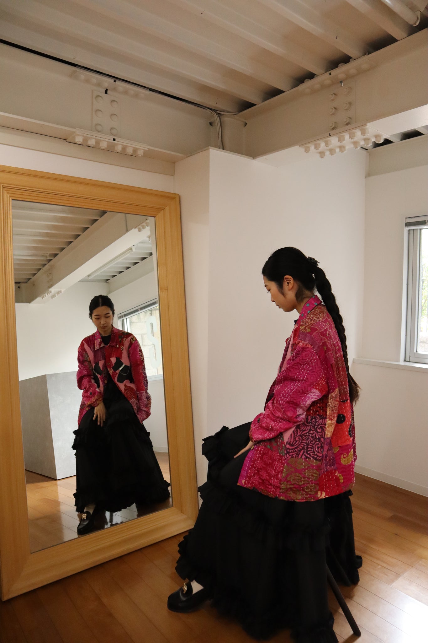 貴重なハンドステッチによる不揃いな針目が、手仕事ならではの美しいリズムを刻み、新たなSIIILONの洋服として生まれ変わりました。