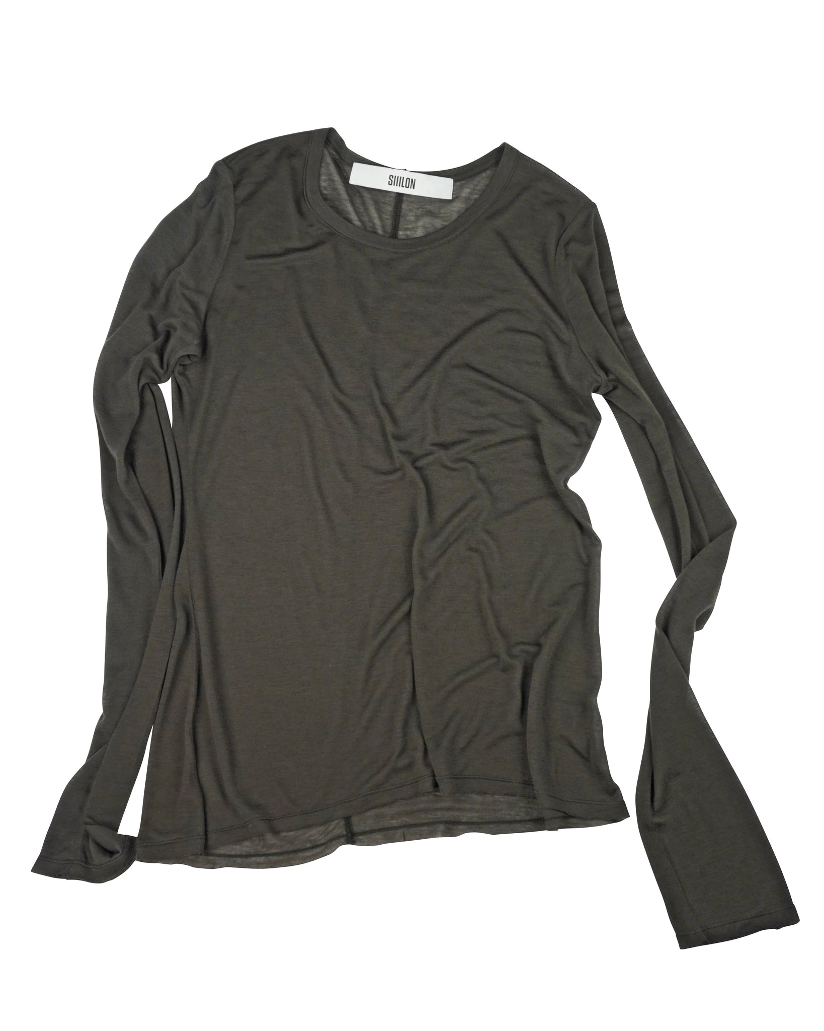 袖丈は長めなので、手首の辺りに生地が溜まるシルエット。