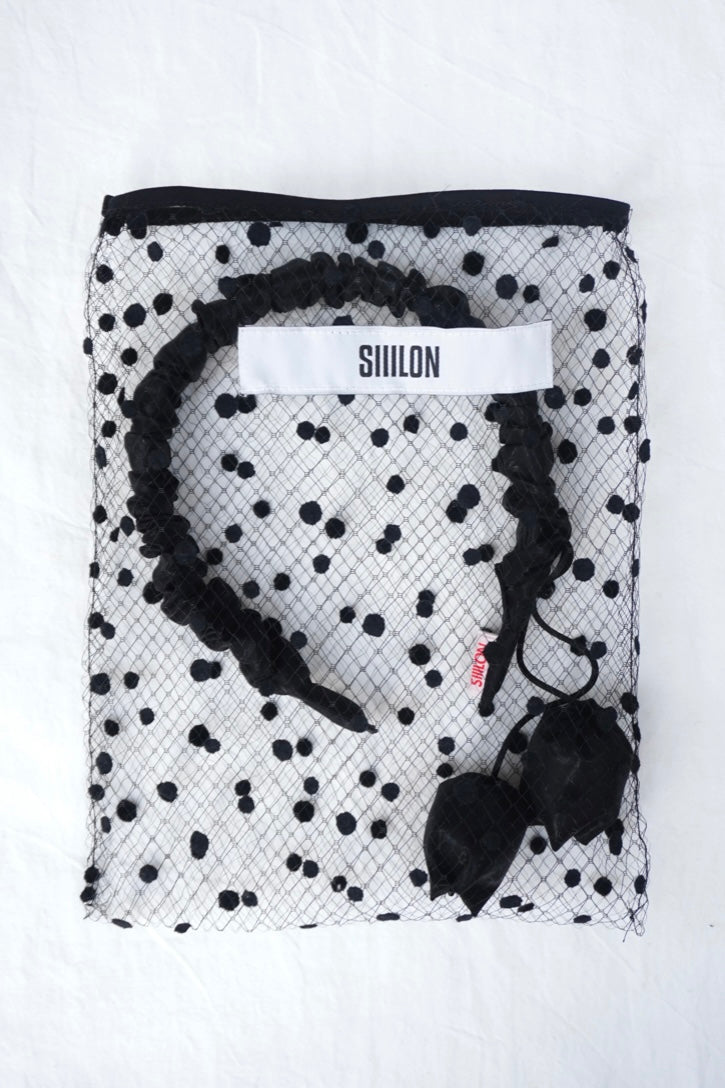 ギャザーのよったボリュームのあるカチューシャに、チューリップモチーフが付きSIIILONらしさが詰まった特別なアイテム。